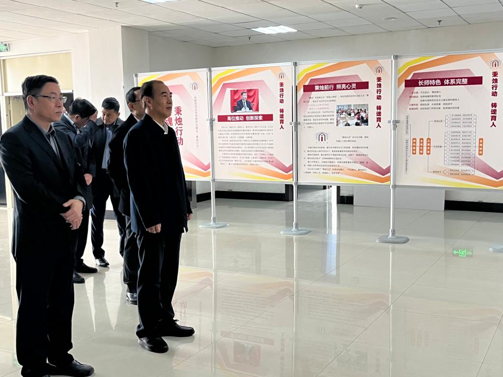 调研中,隋明利、唐铁生一行参观我校师德师风建设“秉烛行动”展览和北方民族文物陈列馆。