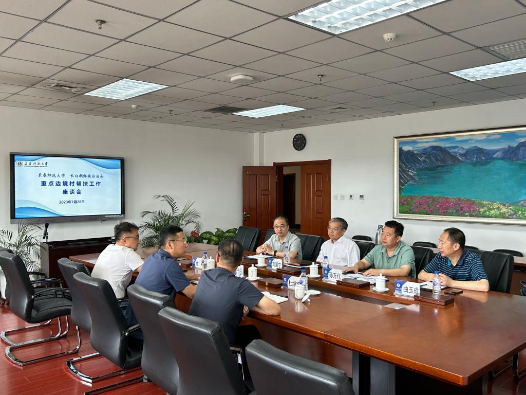 7月28日,长白县副县长刘清国、长白县教育局副局长金利、长白县八道沟镇党委书记杜继宝一行三人到我校对接重点边境村帮扶工作。在帮扶工作座谈会上,双方就产业振兴、人才培养、实习实践、科技助力、产教融合等方面展开深入交流。党委副书记刘国宁参加座谈会并讲话。