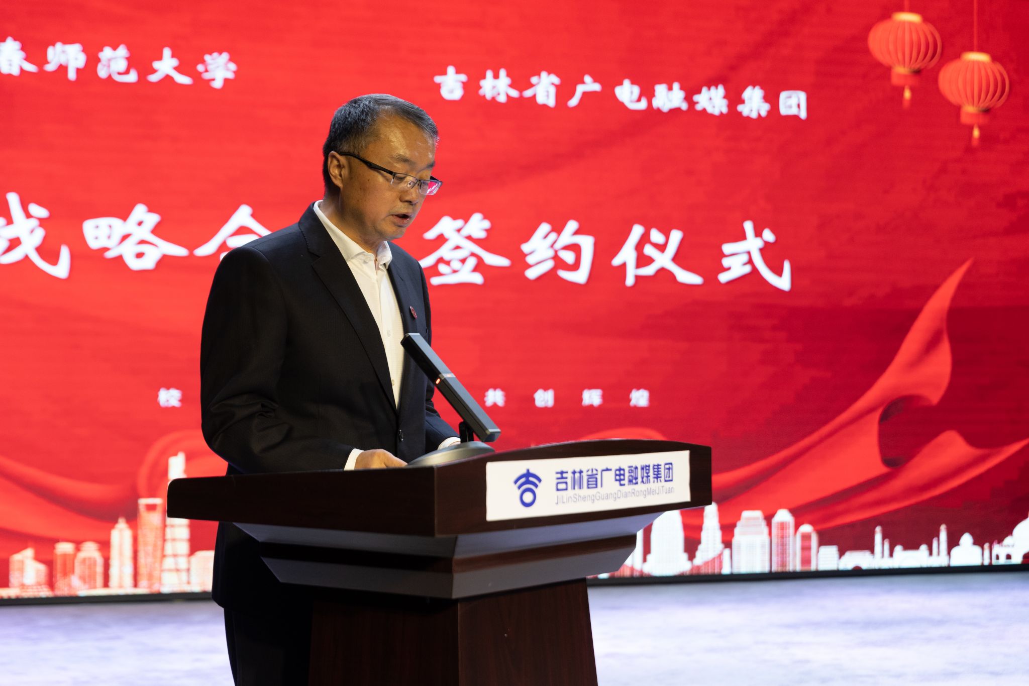谢荣在致辞中表示,产教融合服务体系可以成为吉林广播电视台产业经营的中坚力量,助力频率、频道的共同繁荣。今天的签约仪式是双方优势互补、信息共享、互利双赢的开始,未来还将进一步深化资源利用、业务整合、全流程服务等全方位的合作交流,提升战略协同的层次和水平,实现战略发展中的新跨越。