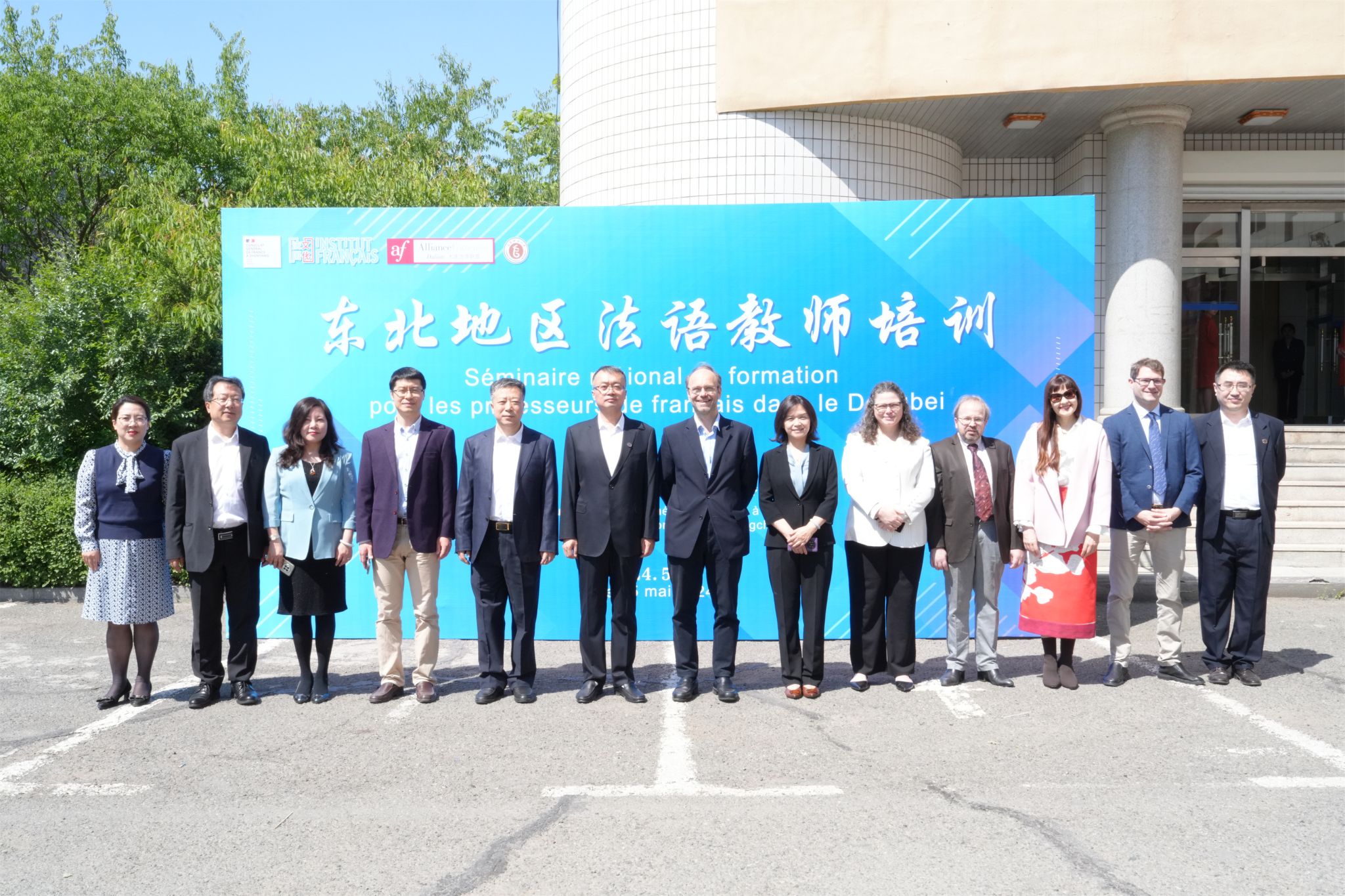 5月25日上午,东北地区法语教师培训在我校法国文化中心开幕。学校党委副书记、校长王延明,吉林省外事办公室副主任黄丽华,长春市人民政府外事办公室主任薛春志,法国驻沈阳总领事馆总领事罗毅睿、教育合作领事夏莱娜,大连法语联盟校长埃马纽埃尔·吉罗东,法国驻华使馆教师培训负责人文迪、法国驻武汉总领事馆语言教学项目官员桑德娜等出席开幕式。