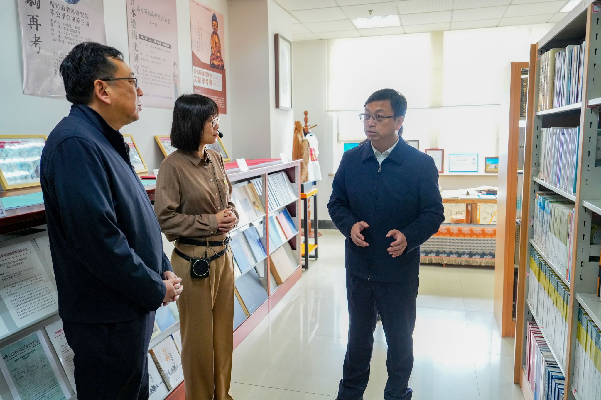 在教学综合楼,曹路宝首先听取了学校整体情况的汇报。在高句丽渤海文献中心,曹路宝详细询问史料来源和学校现阶段的研究情况,对学校高度重视中国史学科建设和高句丽渤海研究等工作给予充分肯定。针对吴大澂研究,曹路宝指出,要深入做好吴大澂奋斗历程、杰出贡献和历史功绩的研究工作,讲好吴大澂勘界守土、为寸土尽寸心的英雄壮举。在日本民间所藏侵华资料馆,曹路宝认真查阅了学校多年来收集的日本侵华相关史料,希望学校能够与南京大屠杀纪念馆加强沟通合作,进一步做好日本侵华史料的收集和研究工作。