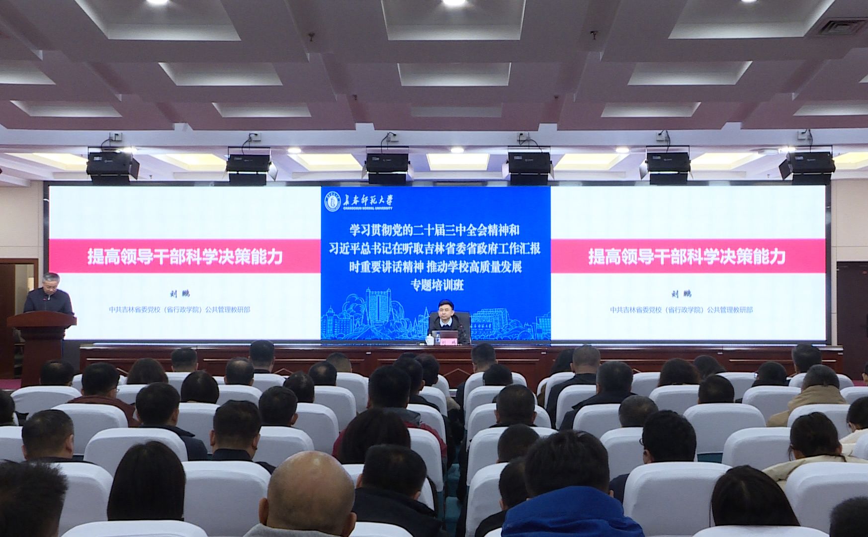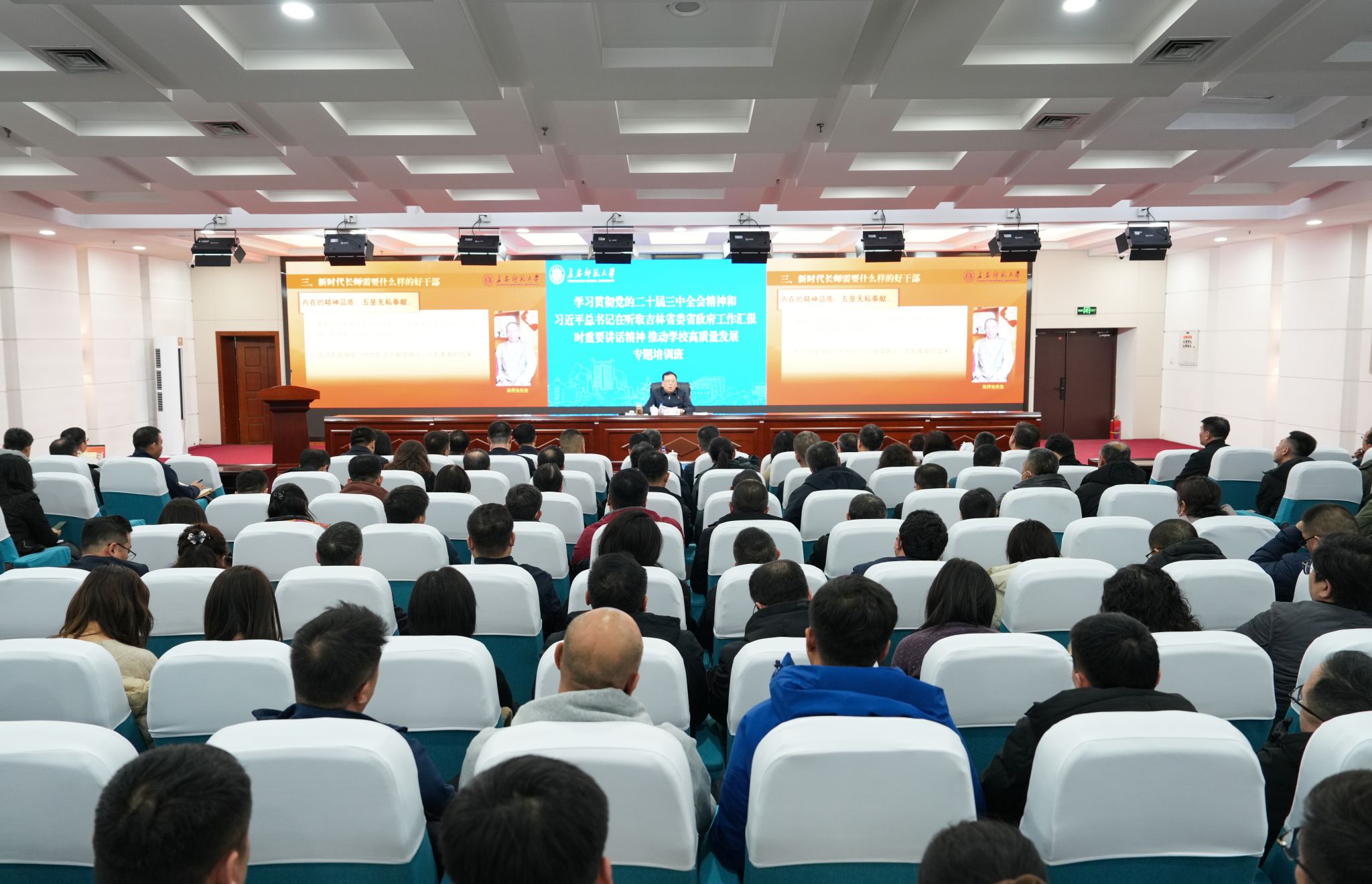 为深入学习贯彻党的二十届三中全会精神,认真学习贯彻落 实习近平总书记在听取吉林省委和省政府工作汇报时的重要讲话精神,不断引导干部树立正确的权力观、政绩观、事业观,全面促进学校干部深化改革、凝聚共识、担当作为,持续推进学校事业高质量发展。2月26日至3月4日,学校举办“学习贯彻党的二十届三中全会精神和习近平总书记在听取吉林省委省政府工作汇报时重要讲话精神 推动学校高质量发展专题培训班”。