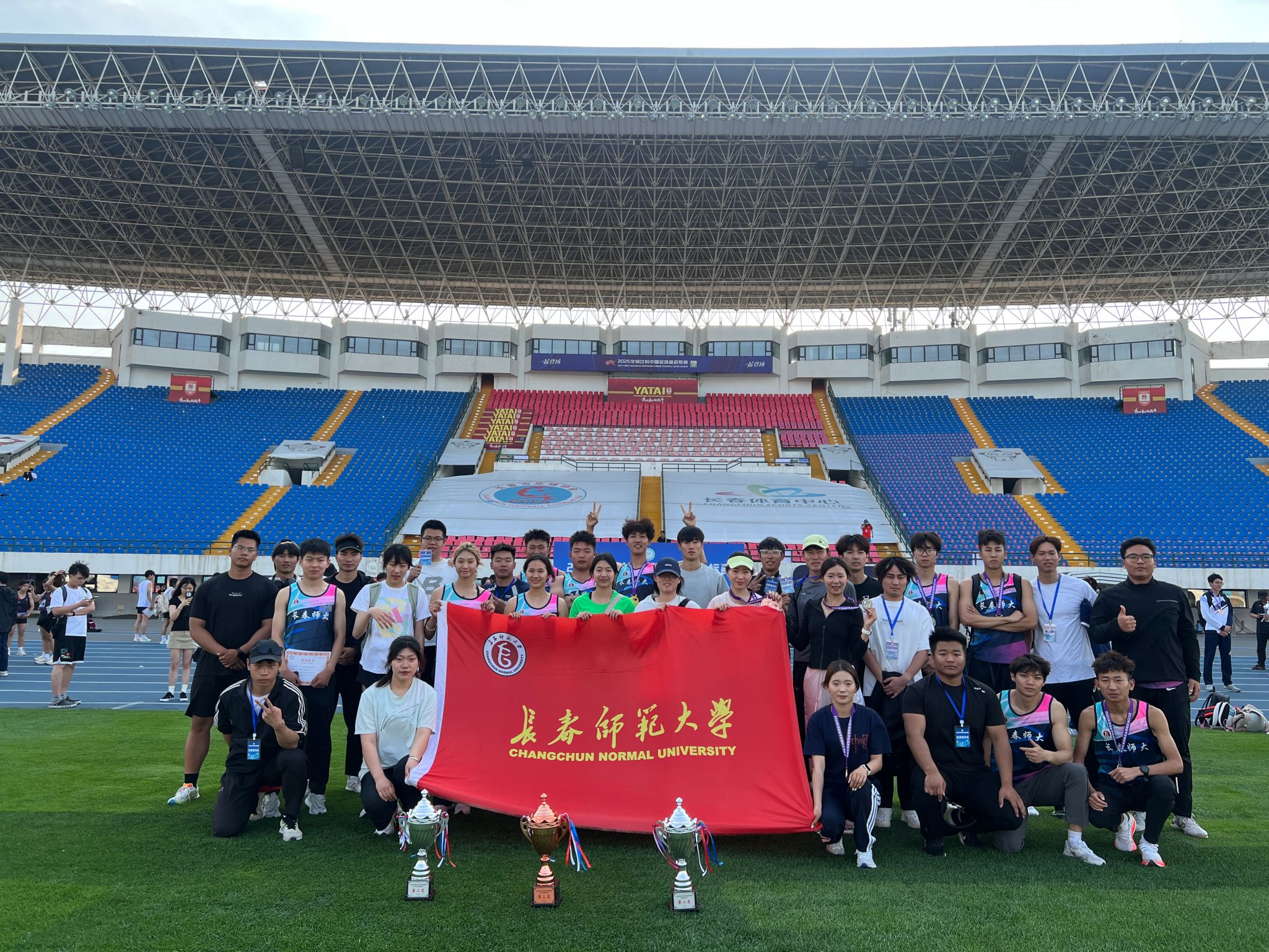 6月10至13日,在2025年吉林省学生田径锦标赛中,体育学院田径队在大学乙组比赛中斩获7金9银5铜,并荣获男女团体总分第二名、男子团体总分第三名,女子团体总分第二名,其中, 2023级运动训练专业李永毅获男子大学生乙组十项全能冠军并打破吉林省纪录, 2024级运动训练专业景远勋获男子大学生乙组110米栏冠军并在现场达到一级运动员成绩等级。